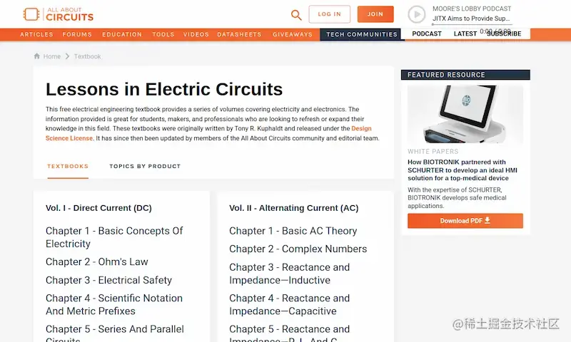 这个网站提供免费的电子学教程,英文的。