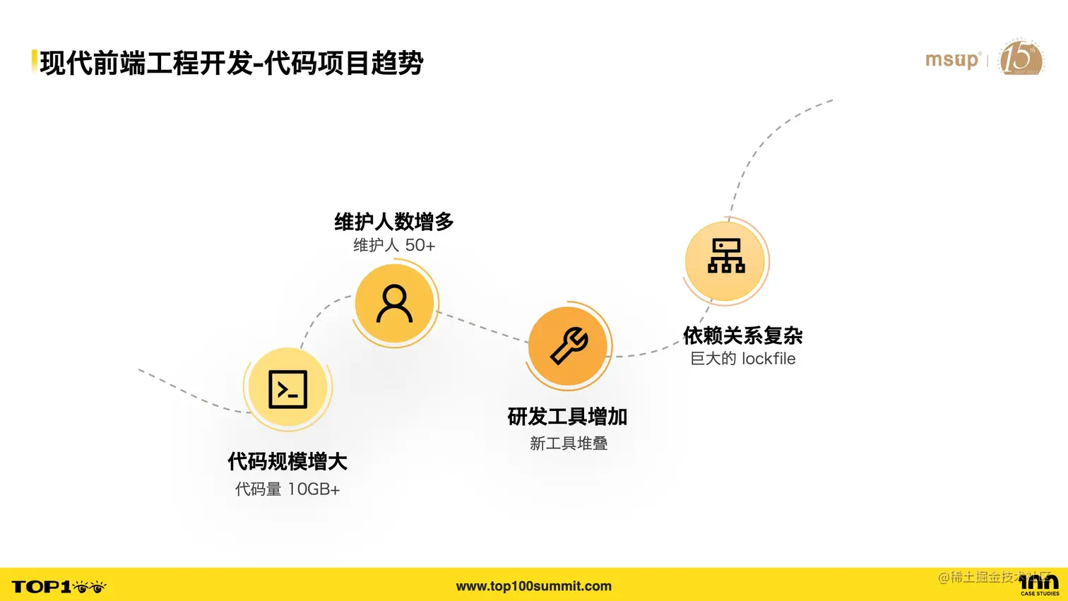 - 首先分析『现代前端工程开发』的趋势,并引出字节跳动,前端工程开发面临的痛点