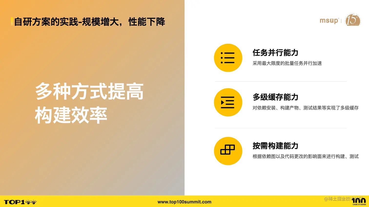 因此在规模增大导致性能下降方面,我们通过多种方式提高构建效率,实践有