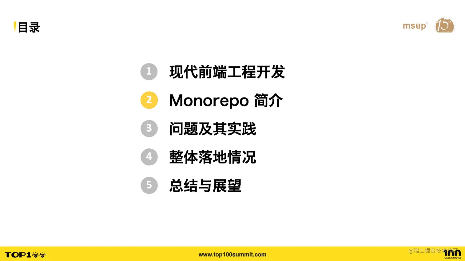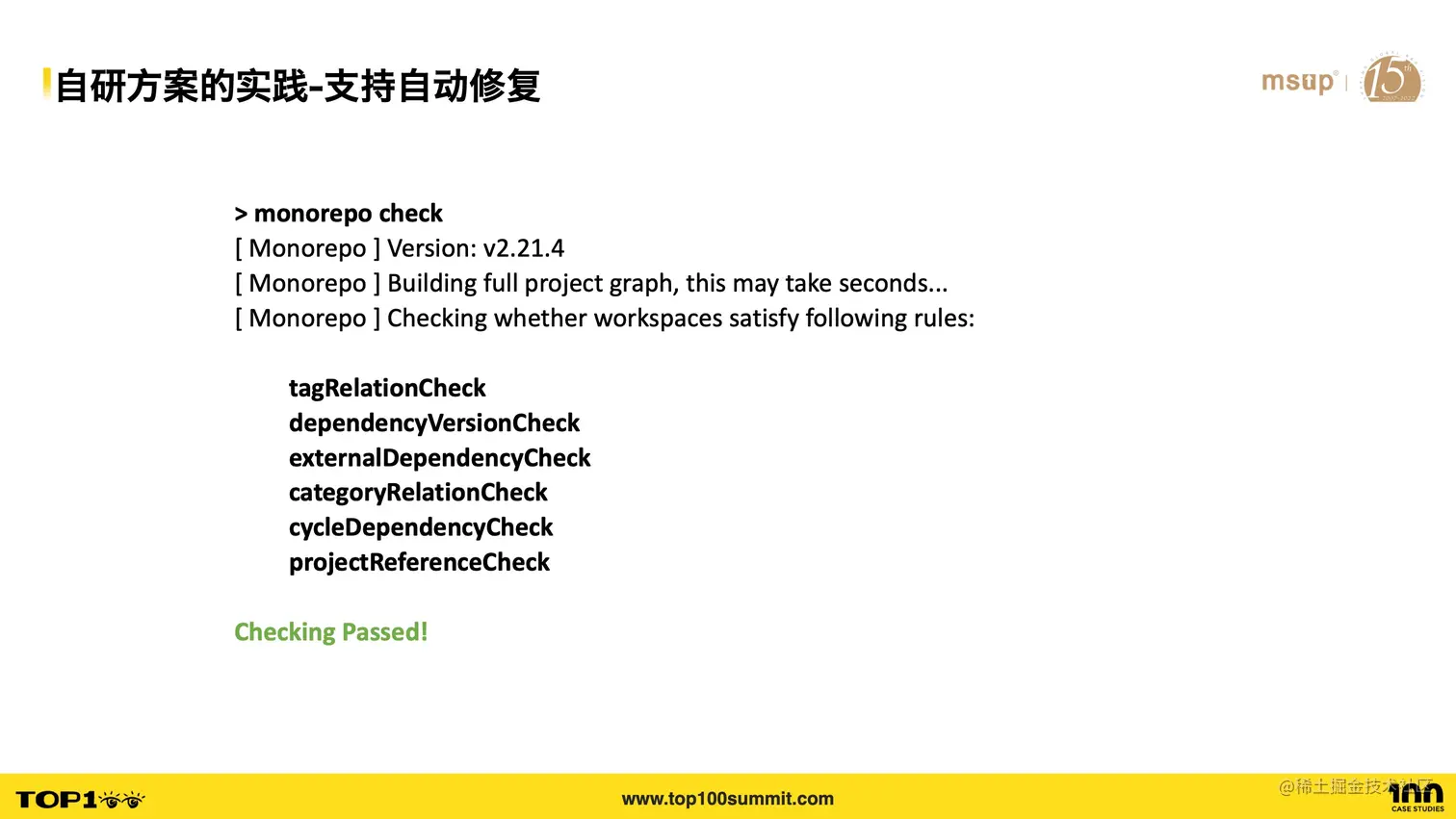 - 第三个是 Monorepo 工程的生命周期往往比 Ployrepo 长很多,且参与开发的同学也非常多,如何确保合入工程的代码保持良好的可维护性,也是一个挑战