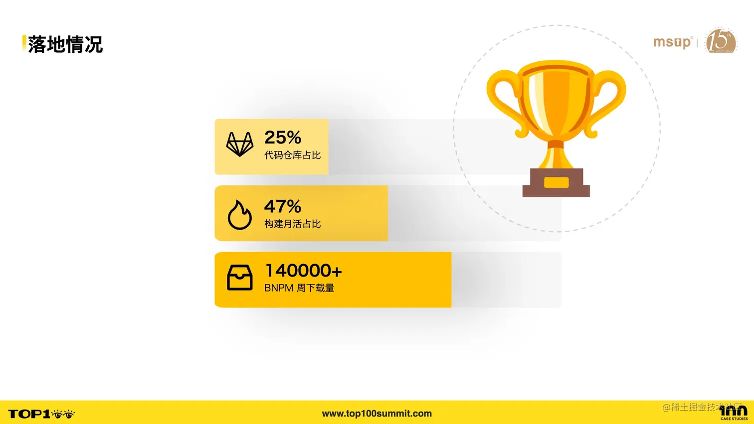 - 在字节跳动的前端领域,无论从仓库占比,月活占比,以及下载量来看,我们的自研方案都是排名第一的 Monorepo 工具
