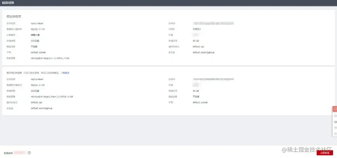 5. 在转高可用页面,确认信息无误后,单击 “立即申请”,即可将普通只读实例转换为高可用只读实例。