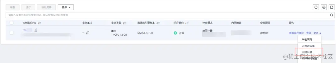 4. 在 “实例管理” 页面,选择指定的实例,单击操作列的 “更多 > 创建只读”,进入 “创建只读” 页面。