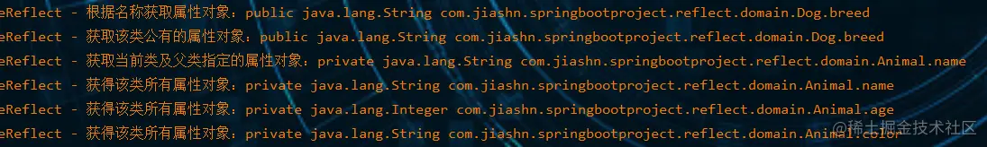 log.info("获取dog当前类及父类属性:" + field);