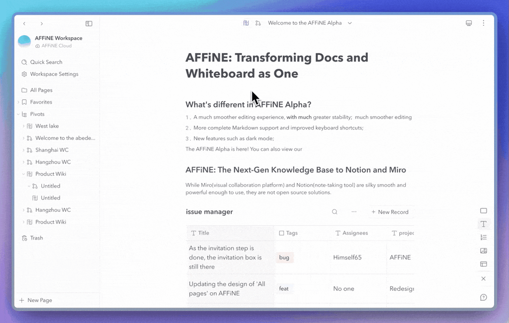 一个类 Notion 的知识管理工具,支持离线使用。同 Notion 一样,集成了笔记、表格、数据库等功能。