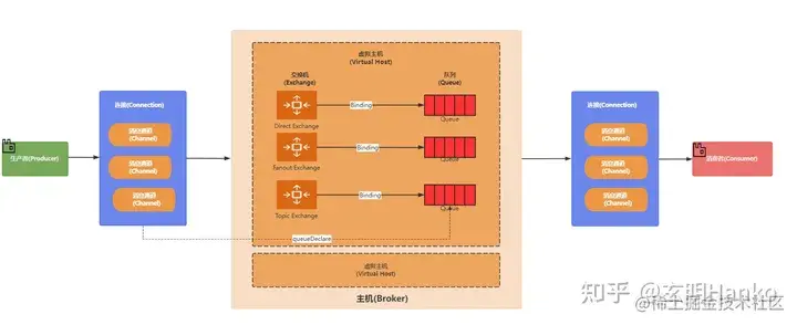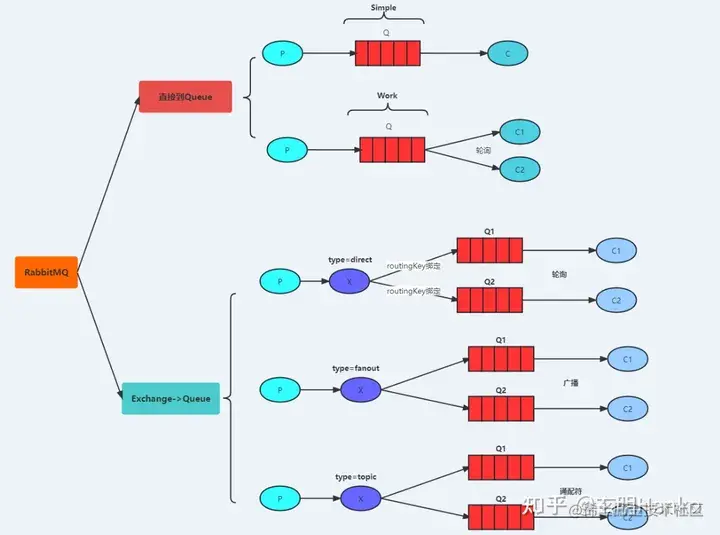 - 交换机(Exchange):解释了交换机的作用和类型,包括直连交换机、扇形交换机和主题交换机。