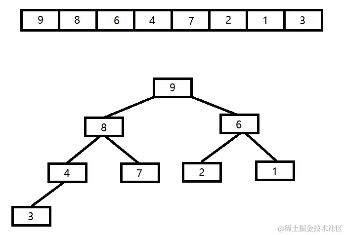 考虑行文和理解方便,本文全部采用大堆举例和实现,并采用数组储存堆。