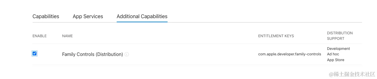切记,如果你工程里有多个extention,则需要把每个extention的上图的地方都进行选中,否则上传ipa的时候会报错 doesn't include the com.apple.developer.family-controls entitlement。为了这个,我找apple那边沟通了2天,最后终于发现了。至此,这个流程完毕。