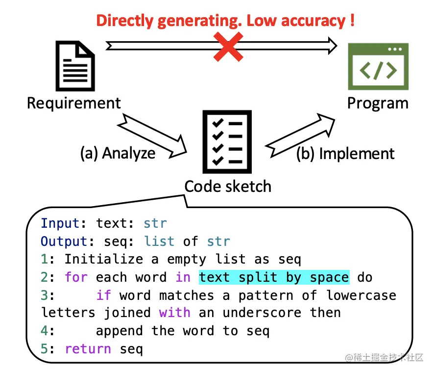 论文发表于 2023 年 5 月,比较新,它包含了过往三年的 code generation 的方法的总结和对比,并且提出了一个比较特别的代码生成思路。