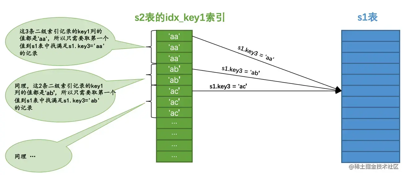 对于s1表的某条记录来说,我们只关心在s2表中是否存在与之匹配的记录,而不关心具体有多少条记录与之匹配
