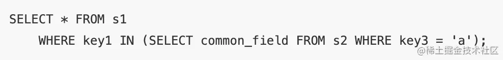 - 当子查询的查询列表处只有主键或者唯一索引列时,可以直接把子查询中的表上拉到外层查询的FROM子句中,并把子查询中的搜索条件合并到外层查询的搜索条件中