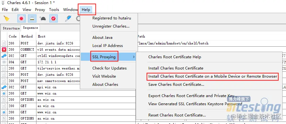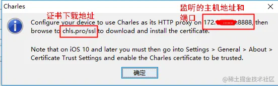 注:charles-Help-SSL Proxying-Install Charles Root Certificate on a Moblie Device or Remote Browser可查看监听的主机地址和端口,以及下载证书的地址。