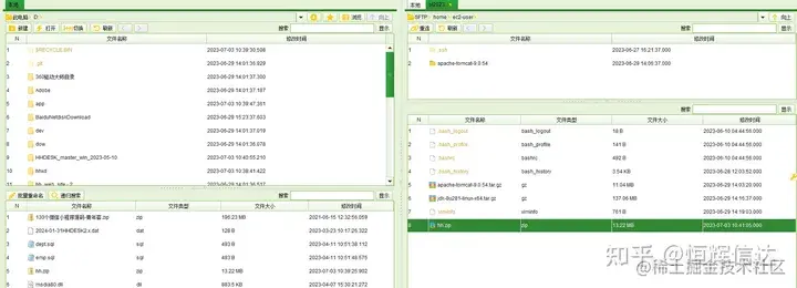 将打包成压缩文件的网站复制到服务器上。直接将从本地拖入到右侧服务器便可。