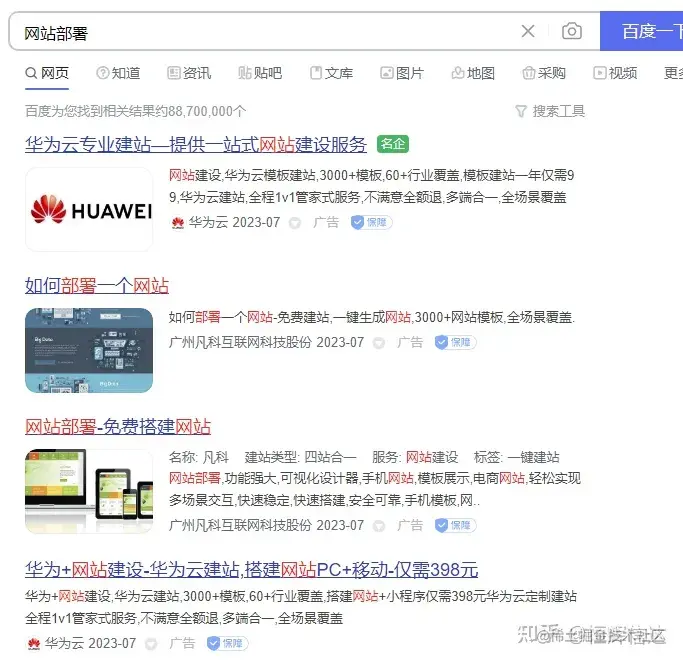 网上搜索一下网站部署,首先出现的便是各个收费广告——说明这是一项具有一定难度且麻烦的工作。