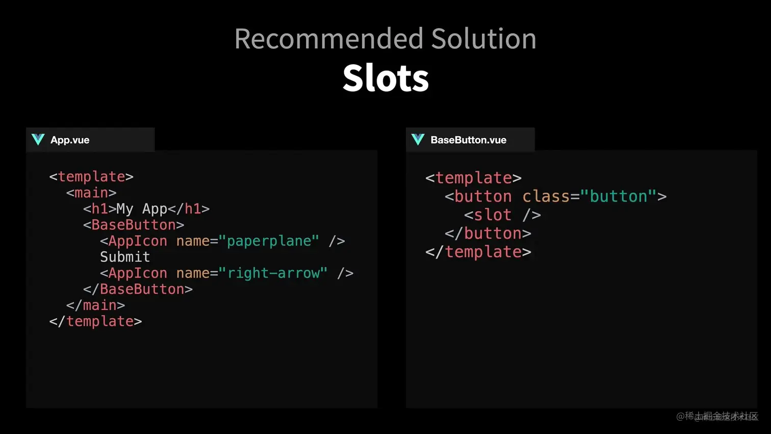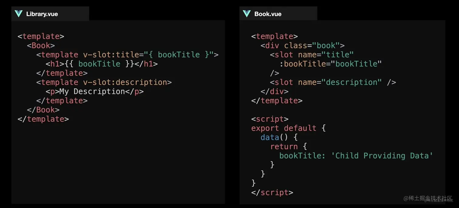 多个 slot 示例,v-slot 只能在 template 元素上使用(建议使用 template,即使只有一个 slot )
