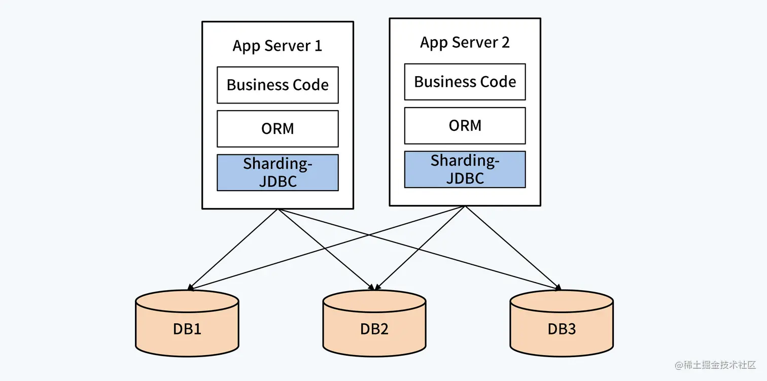 这种客户端组件的典型产品是 Sharding-JDBC。