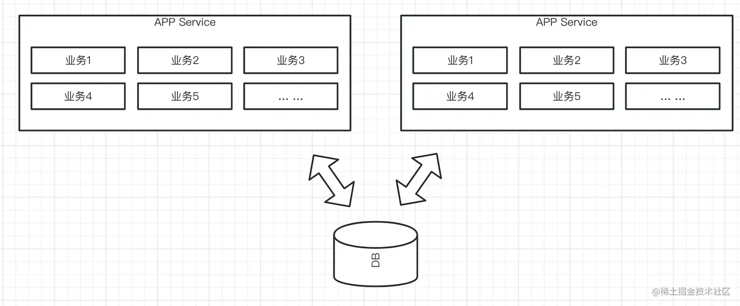 不过传统单体架构的是可以水平伸缩的,这个样子就不在同一个线程中,伸缩架构如图