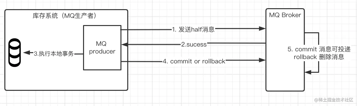 - 图中 5:MQ Server 对该消息发起消息回查。