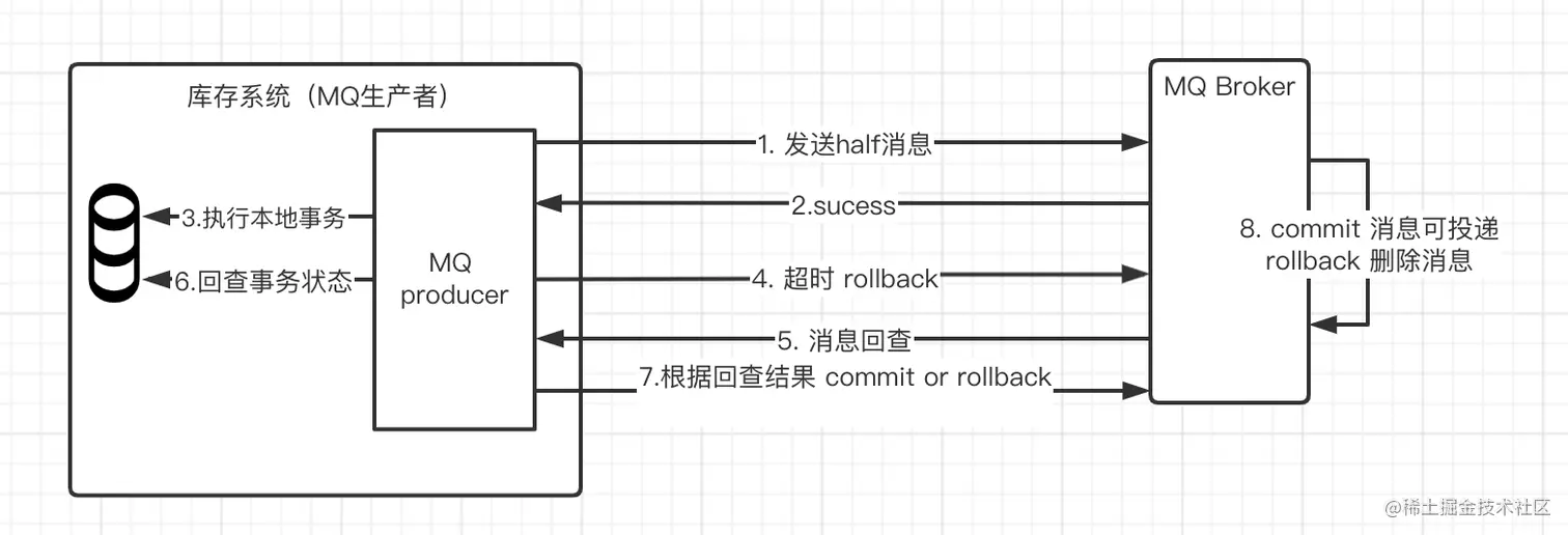 - 图中 6:发送方收到消息回查后,需要检查对应消息的本地事务执行的最终结果。