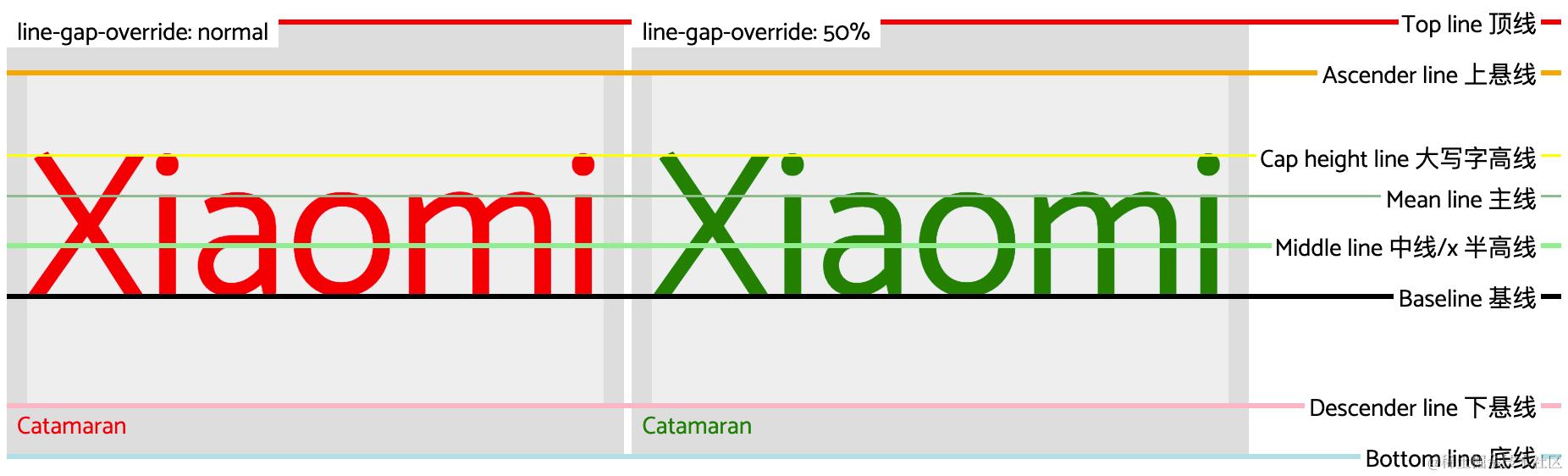 line-gap-override 属性的作用是设置这个字体的行间距(行间距 = 行高 - 字体大小)。