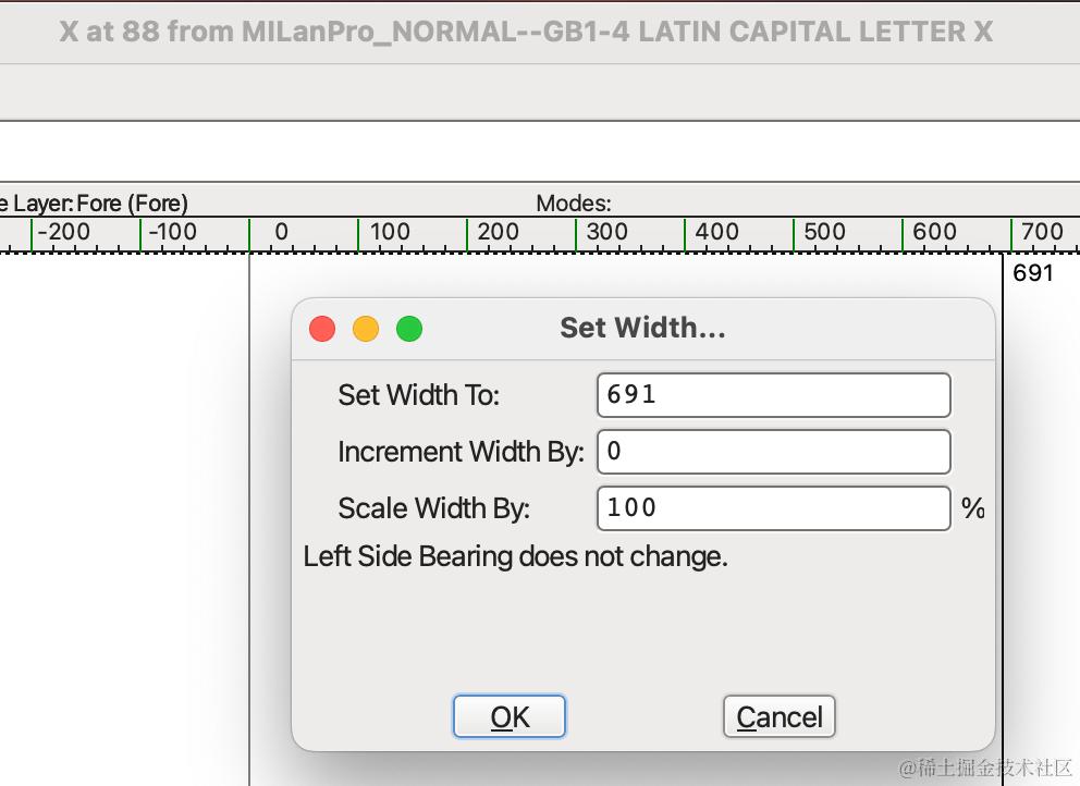 | 大写字母 X | 宽度 | FontForge 截图 |