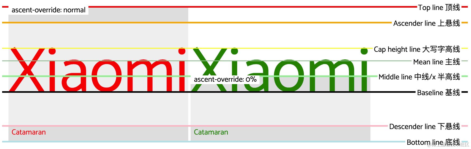 | ascent-override | 设置上悬线距离基线的距离 | normal | 默认值,由字体文件决定: (Ascent / em) * font-size。初始值为 Ascent / Em Size |
