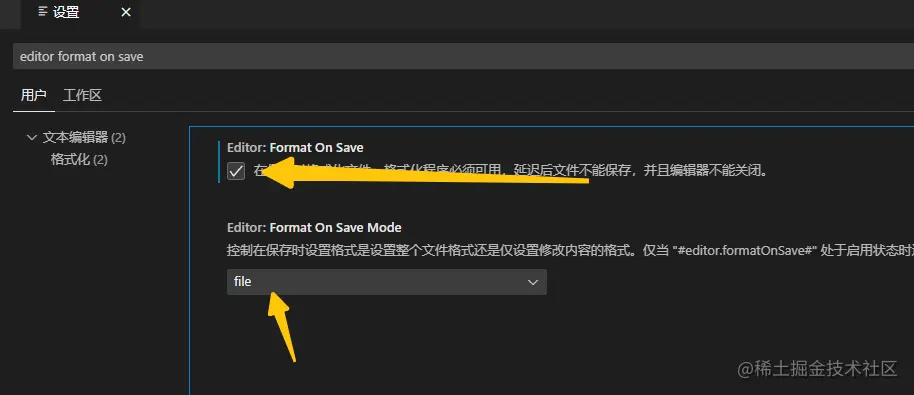 搜索editor format on save ;在用户区打钩并选择file文件即可