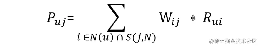 N(u) 表示用户 u 感兴趣的物品集合,S(j,N) 表示和物品 j 最相似的前 N 个物品,Wij 表示物品 i 和物品 j 的相似度,Rui 表示用户 u 对物品 i 的兴趣度。