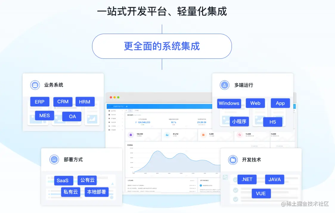 JNPF是采用Java+.Net双技术引擎,提供可视化的界面设计和逻辑编排,大幅降低开发门槛,少量编译部署,更像一种傻瓜式的应用搭建平台,即可应对个性化/复杂业务场景需求,支持私有化部署(本地部署)。