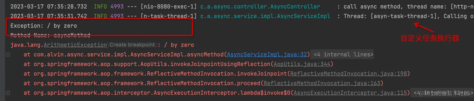 我们也可以自定义异步方法的处理异常和异步任务执行器,我们需要配置 AsyncUncaughtExceptionHandler,如下代码所示: