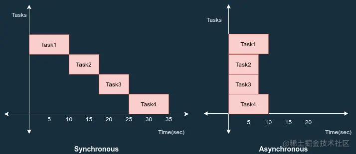 - 同步编程:在同步编程中,任务一次执行一个,只有当一个任务完成时,下一个任务才会被解除阻塞。