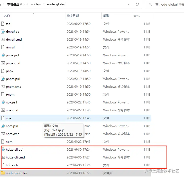 F:\nodejs\node_global\node_modules@xxxj保存项目文件,文件内容是files字段中指定的,files中应该设置执行中需要调用的文件。 F:\nodejs\node_global会保存执行命令,该执行命令是通过package.json中bin对象指定的入口文件。入口文件顶部的#!/usr/bin/env node是告诉系统使用nodejs执行当前文件。