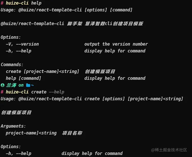 | commander | 如果我们把bin下面的命令huize-cli称作一级命令,该命令是创建给系统识别的,那么commander工具包会创建对应的子命令和参数,使用该工具包就可以得到用户的子命令(create)、参数等。以及可以创建该命令的描述:例如huize-cli help 、huize-cli create --help 。具体使用方式,见官方文档 |
