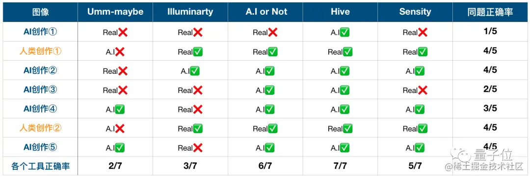 对于人类创作的照片,AI鉴别器的正确率比较高,两张照片都只有Umm-maybe鉴别器判断错误。