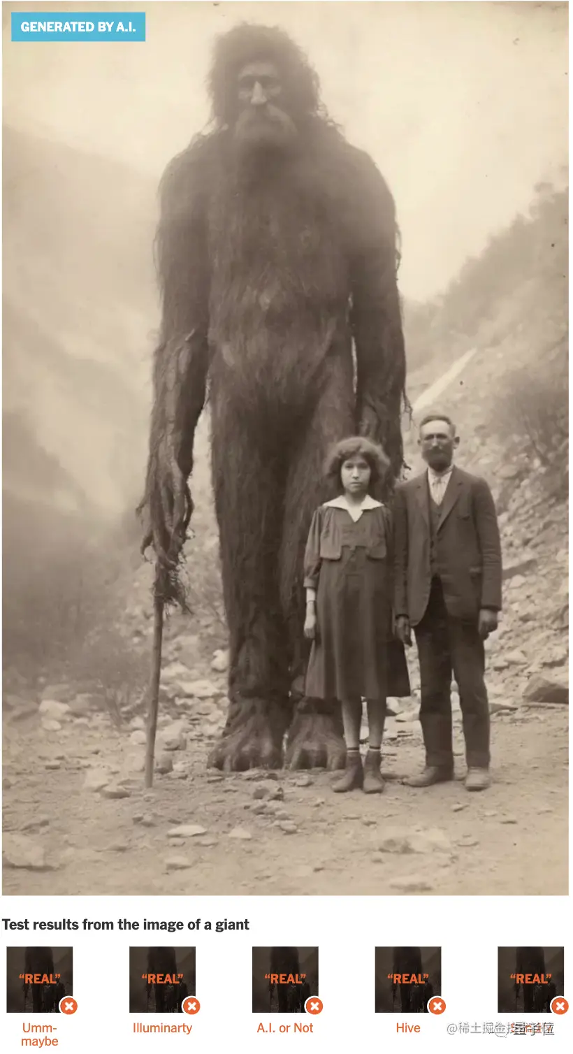 啊这,AI鉴别器似乎不太靠谱的亚子。这就是《纽约时报》最近做的一项测试,他们找来了市面上五个常见的AI鉴别器,分别喂给它们100多张照片做测试。结果发现,AI鉴别器不仅会把AI照片错认成真的,也会把真实照片划定为AI生成的。而且不同鉴别器之间的水平差距也不小。具体表现如何?一起来看