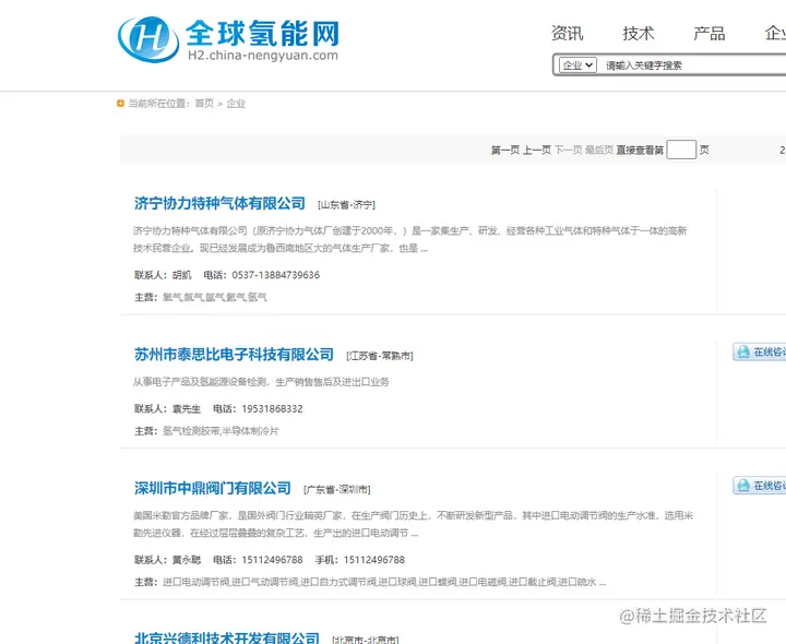 全球氢能网有氢能源相关企业的列表,怎么全部爬取下来呢?