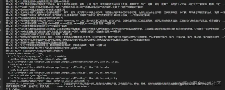 根据错误提示,发现程序试图将一个包含非法字符的字符串写入excel表格。openpyxl库中的cell对象只能写入纯文本或数字,不能写入包含特殊字符的字符串。因此,需要对写入的字符串进行处理,去除其中的非法字符。