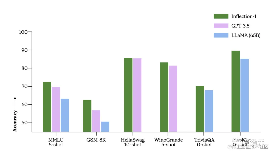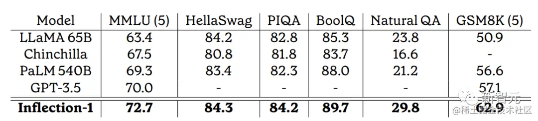 技术报告显示,Inflection-1是其计算类中最好的模型,在广泛的基准测试中优于GPT-3.5、LLaMA、Chinchilla和PaLM-540B。