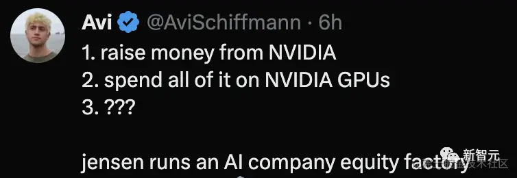还有网友对此波操作表示不懂,从英伟达公司筹集钱,再把所有的钱都花在英伟达公司的GPU上???