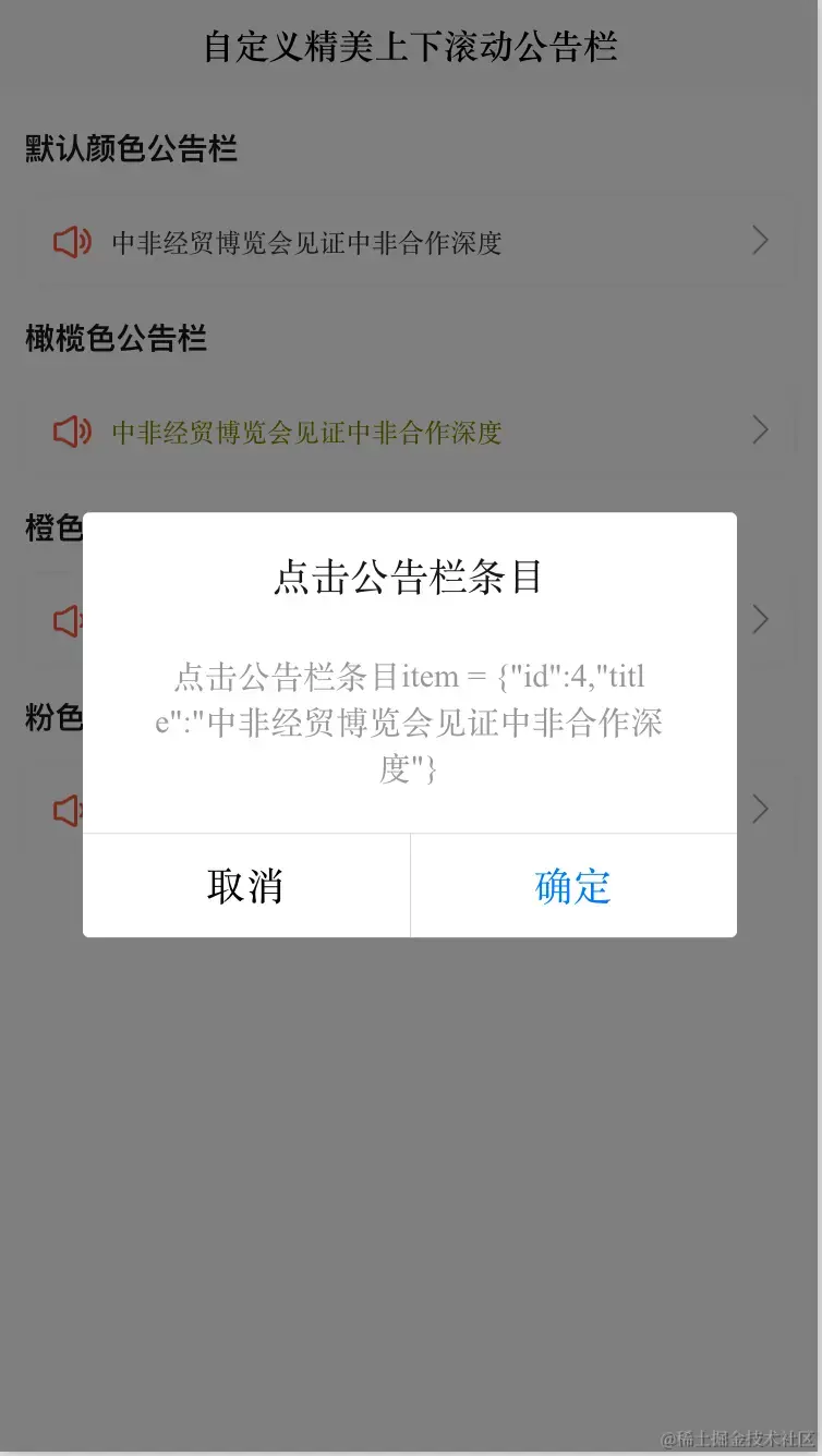 content: "点击公告栏条目item = " + JSON.stringify(item)