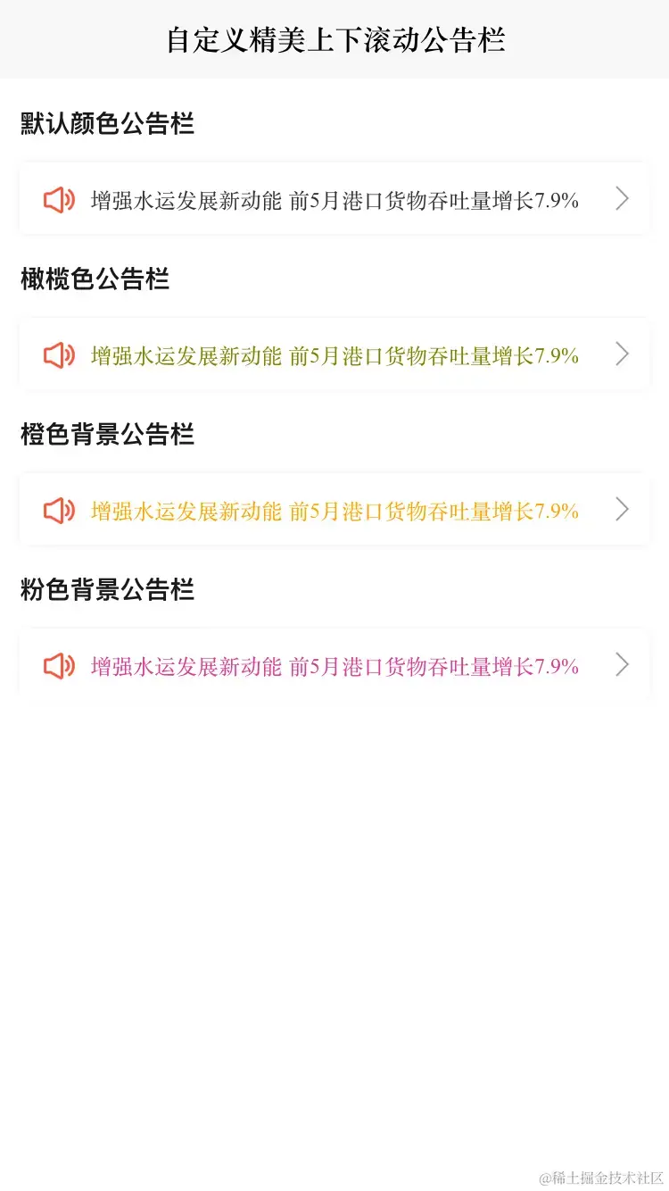 前端Vue自定义精美上下滚动通告栏组件 常用于展示公告信息 上下滚动跑马灯 上下滚动广播
