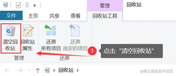 1.进入回收站中,确认回收站中的文件均为无用文件后,点击左上角 【清空回收站】 。
