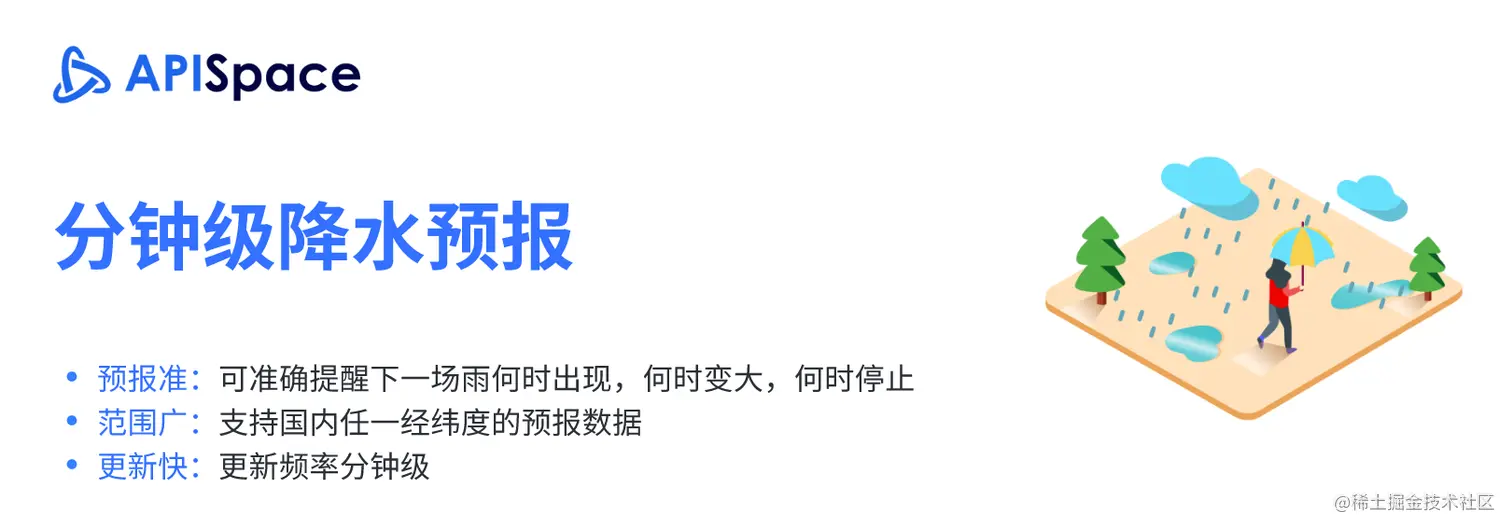 APISpace 的 分钟级降水预报API,预报准、更新快、预报范围广,是一款非常不错的降水预报接口。所以接下来我将使用 APISpace 的 API 教您快速掌握分钟级降水预报接口的使用~