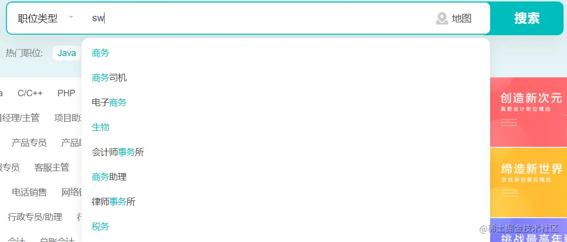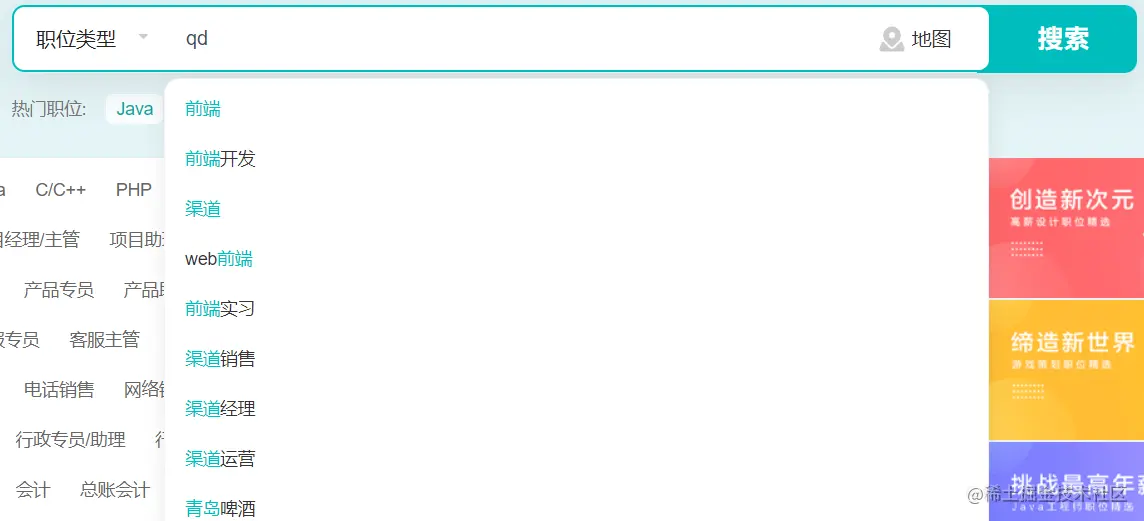 搜索提示是搜索框一个比较基础的功能,他赋予了搜索框生命,提高了用户的搜索体验。本文通过仿写 boss 直聘首页职位公司搜索,来实现一个自己搜索提示功能。