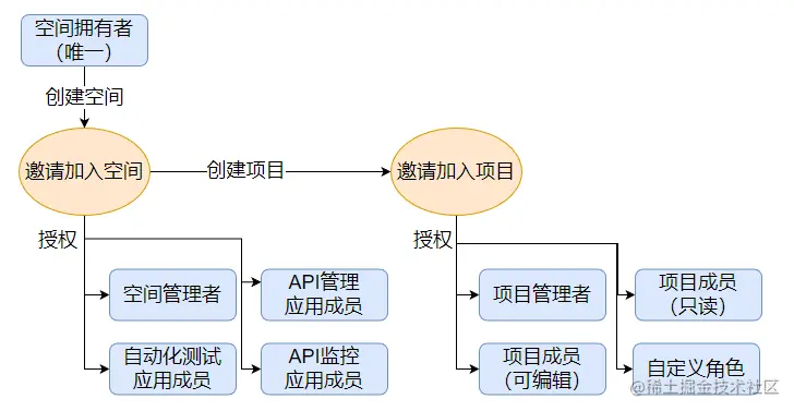 如Eolink中的空间角色和项目角色,即为功能类型权限概念。
