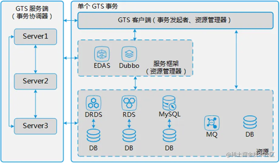用于实现分布式环境下,特别是微服务架构下的高性能事务一致性。可以与RDS、MySQL、PostgreSQL等数据源,Spring Cloud、Dubbo、HSF及其他RPC框架,MQ消息队列等中间件产品配合使用,轻松实现分布式数据库事务、多库事务、消息事务、服务链路级事务及各种组合。