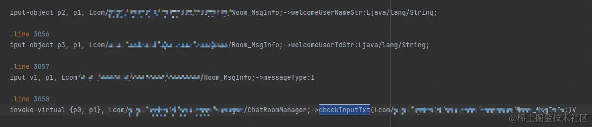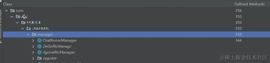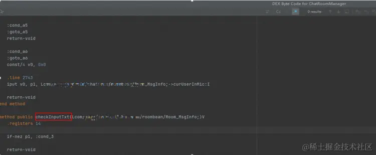 日志上看是崩溃在外部类调用内部类的checkInputTxt方法上,通过方法签名看,外部类是旧包中的,内部类是补丁包的,但是外部类有变更,理论上应该加载补丁中的外部类。此时,我们怀疑外部类ChatRoomManager没打包进补丁包,反编译补丁包检查(如下图)