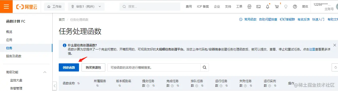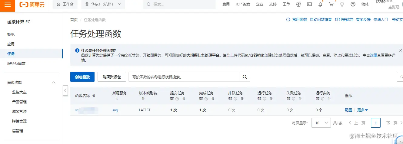 函数整体创建成功之后,点击函数名称,进入函数详情页