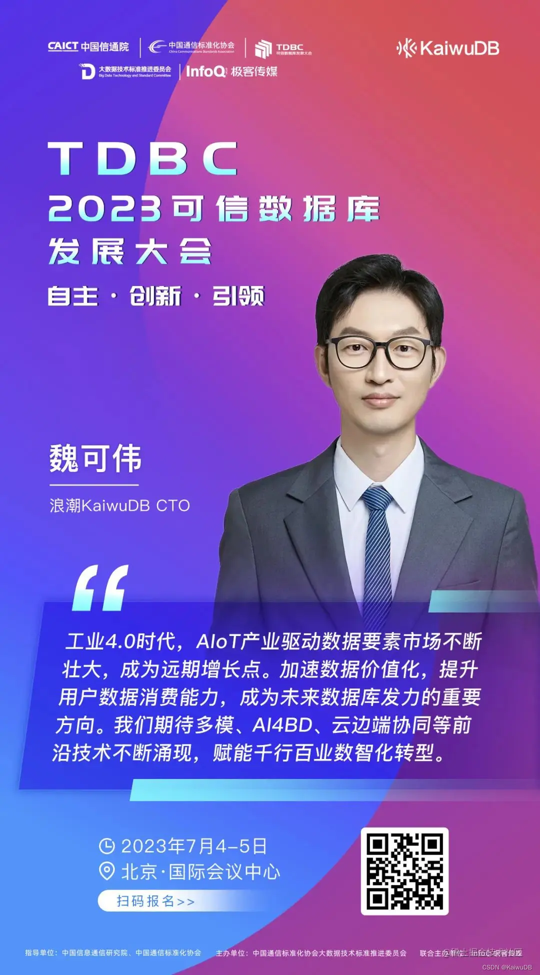 Hi,各位好!我是 KaiwuDB CTO 魏可伟,很开心明天将在可信数据库大会和各位见面,本次想和大家聊聊关于 “多模引擎、AI、IoT”等数据库关键技术。