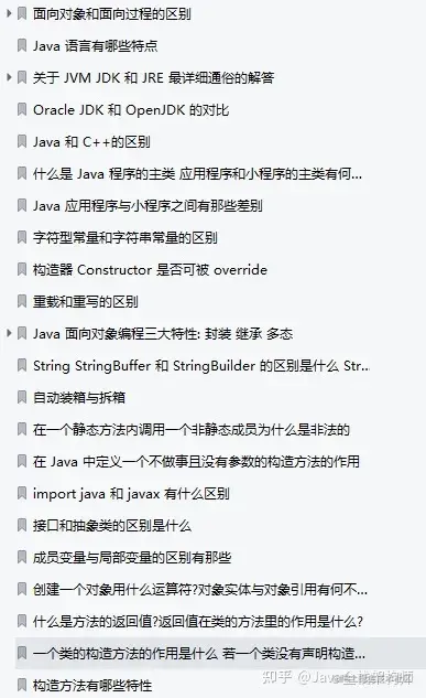 文档从Java基础,多线程,JVM等诸多主流技术一直讲到算法,项目面试,篇幅足足有近2k页,可以说是市面上最全的Java八股文面试总结了大家且看目录: